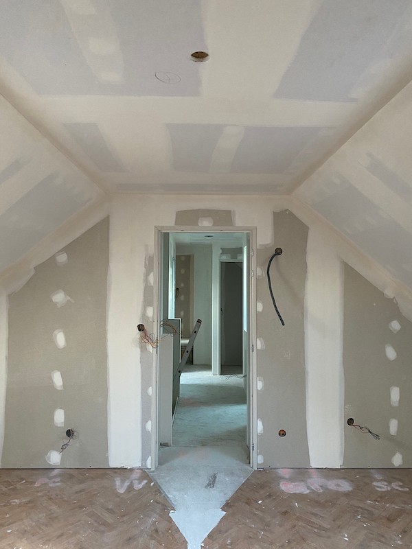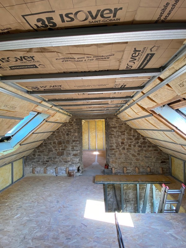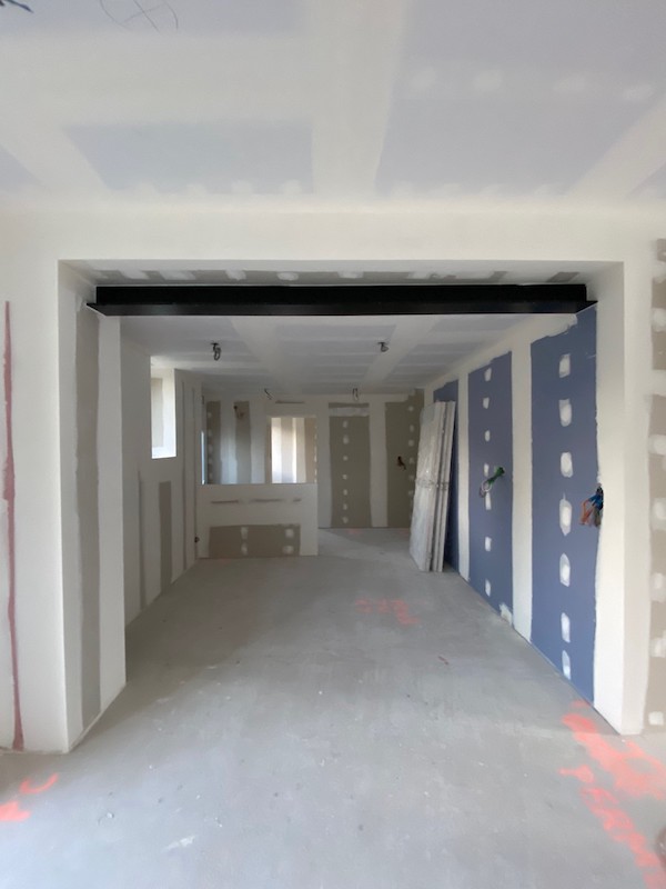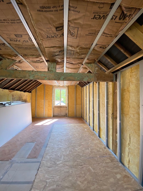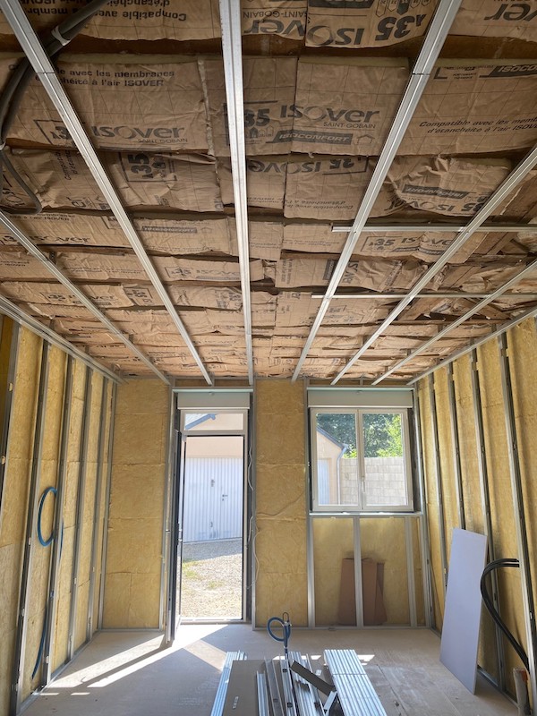 Réhabilitation complète d’une habitation en cloisons sèches – isolation et ravalement de l’extension